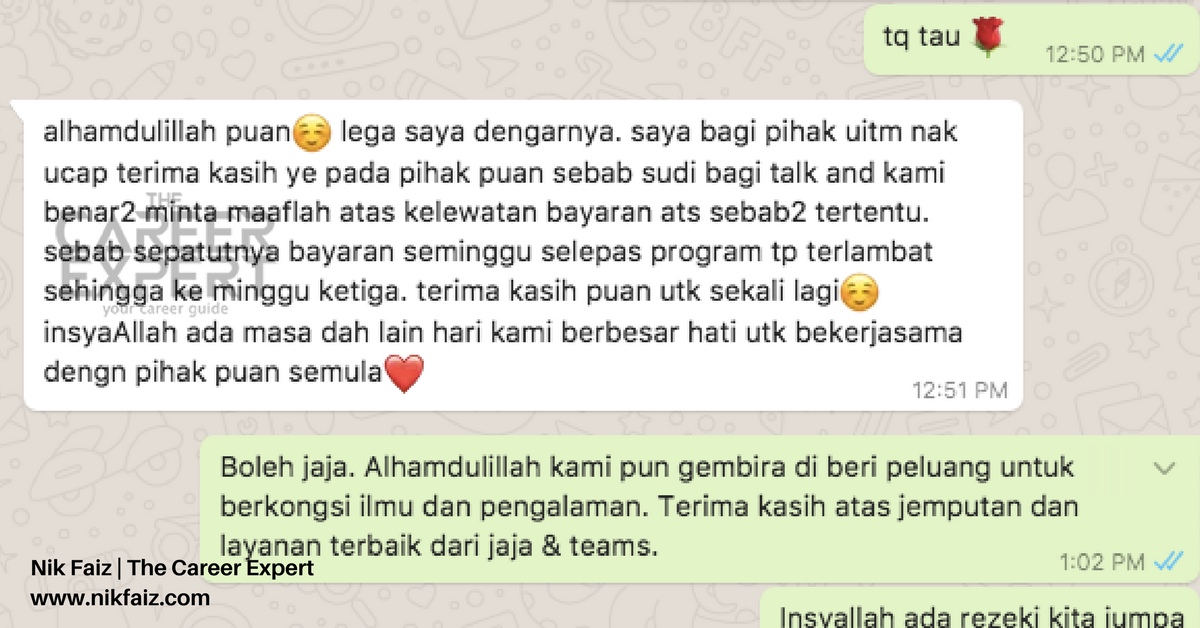 Ini yang saya tekankan dalam semua bengkel-bengkel yang dikendalikan oleh The Career Expert.